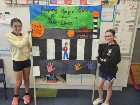 Well done to Olive, Frankie, Maylei and Lani from Room 16, our amazing road patrollers who designed and created this year’s banner for the End-of-Year Road Patrol Celebration 2025.  Their message is clear and powerful: “Keeping people safe is how we save lives!”